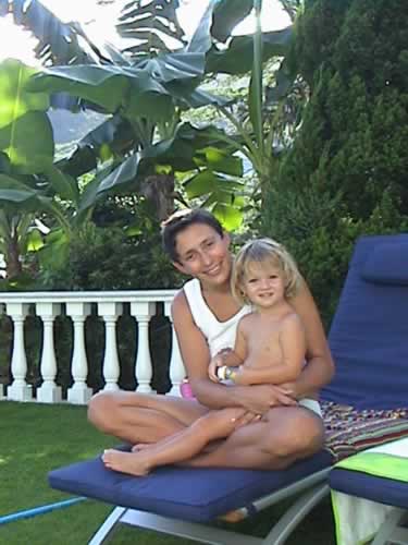 mit Tochter im Garten des Hauses in Hong Kong